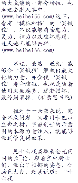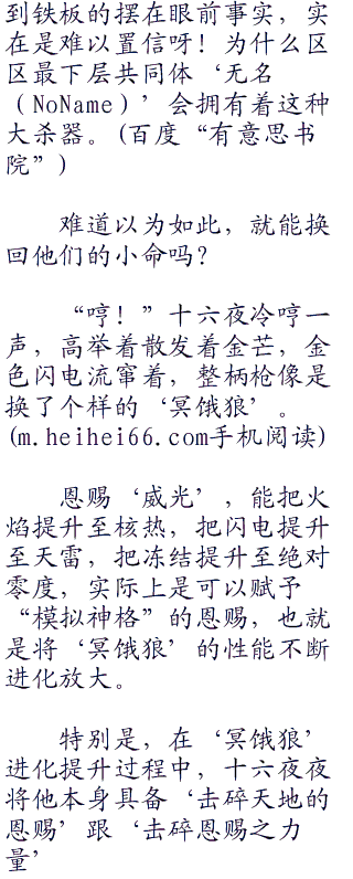 十六夜将从久远飞鸟身上,复制得到恩赐‘威光’的力量,灌入‘冥饿狼’枪中。顿时,灰白色的光辉散发着,那是能够将一切魔力无效后,而且能够斩裂任何结界的神格振动波的闪光。