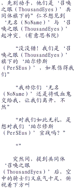 对于空中的共同体‘珀尔修斯(PerSEus)’骑士们的想法,十六夜不知道,就算是知道,也懒得理会。