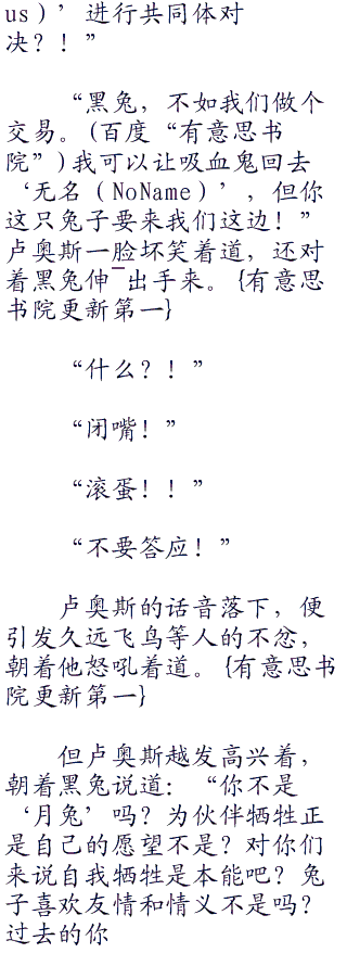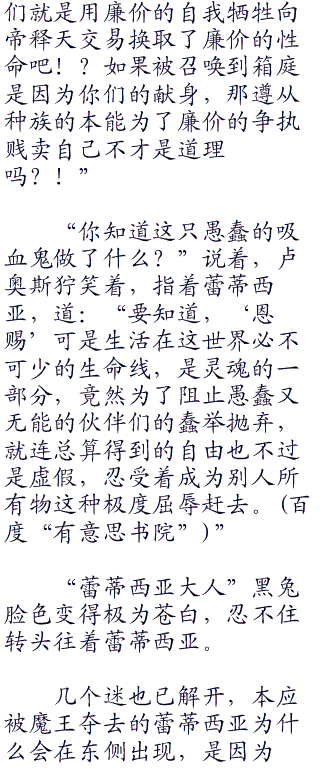 “”卢奥斯沉默着,擦掉额头上的冷汗。当他目光不经意扫过蕾蒂西亚身上时,猛地一喜,脸上狞笑着。