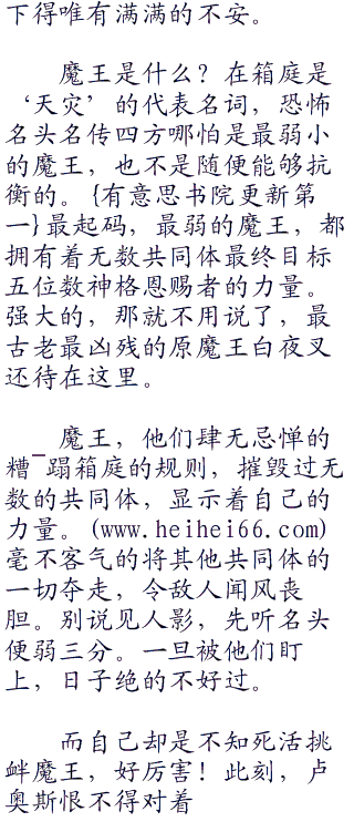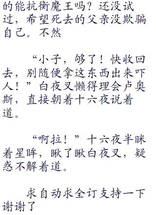 “小子,你你笑什么?”卢奥斯忍不住打了个冷颤,为了得到黑兔,强忍住心中升起的惊惧,朝着十六夜说着道:“你们要是不肯交易!我会立刻卖掉这只吸血鬼。我可是讨厌冷淡的女人的,特别是她的体型几乎就是个小孩子!不过呢,外表还是很可爱的。对喜欢那种调调儿的人来说,可是无法忍耐的吧?把她”