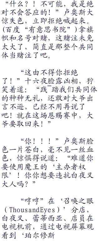 “你”卢奥斯对视上那双璀璨的星眸,阴晴不定地说着。