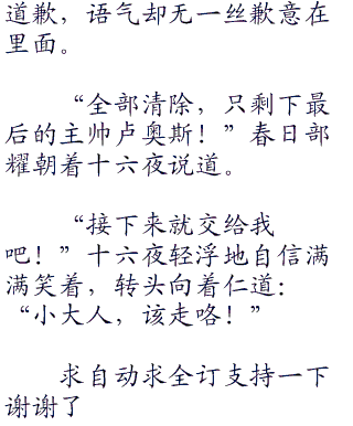 久远飞鸟确认着‘契约文书’上的规则,为难的复述道:“被看到者将丧失挑战主帅的资格,而我们的主帅仁无法到达最深处即失去资格,也就是参赛方失败。”也就是说,他们只中要是谁被小喽喽骑士看到,将会丧失挑战卢奥斯的资格。就必须有人包括仁在内,不被小喽喽骑士看到,才能够挑战卢奥斯。