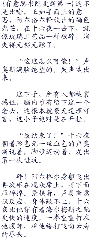 “阿阿尔格尔!”卢奥斯目瞪口呆地注视着这一光景,这绝对性的压制是怎么回事呀!