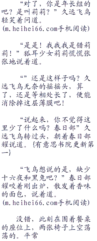 “呵呵”久远飞鸟欲要端起茶的手停顿了下来,苦笑着道:“你冷静点,不要紧张,放松。”她大小姐的气场有这么强吗?这位可爱的孩子,跟春日部讲话时相当平常,怎么换到她这里,就显得十分惶恐。