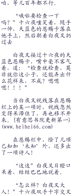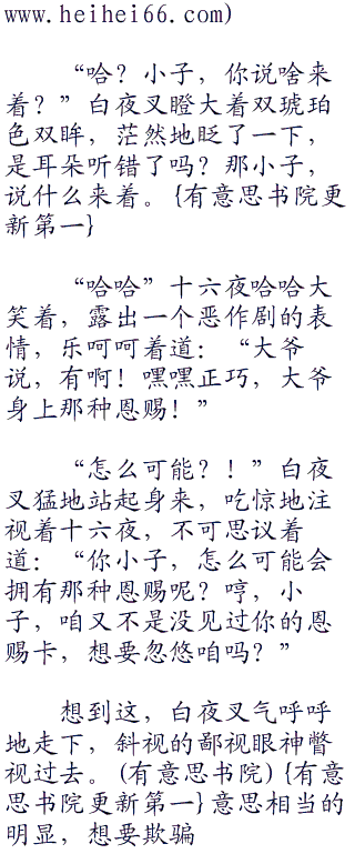 “呃”白夜叉一怔,这种说法蛮有趣的,不过好像事实还真差不多呀。