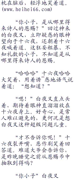 随即,白夜叉尴尬一笑,连扇动折扇的手速不由加快,道:“嘛嘛跟你讲得差不多。既然你知道诗人,那就好办了。”