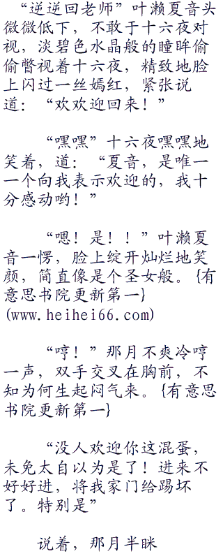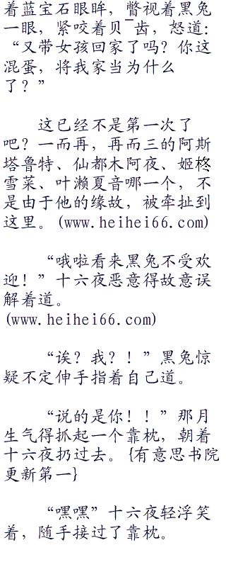 “这混蛋!!!”那月恼怒瞪着他,态度还是一如既往地恶劣。在他消失这两天,为其牵肠挂肚十分不值呀!