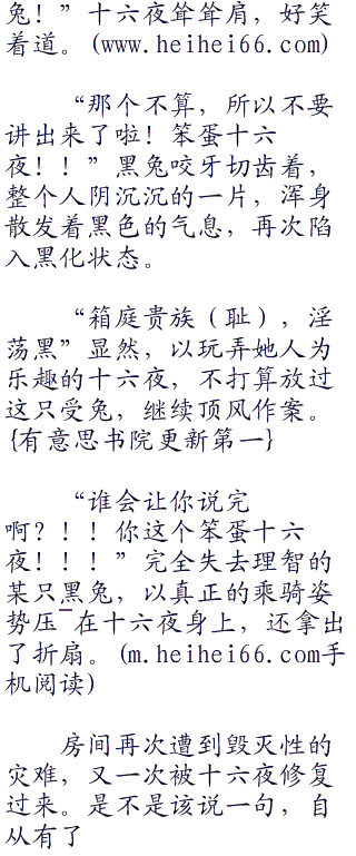 “请稍微给我等等,谁要逆~推你了,还有谁叫yin兔了?!”黑兔恼羞成怒,朝着十六夜怒吼着道。