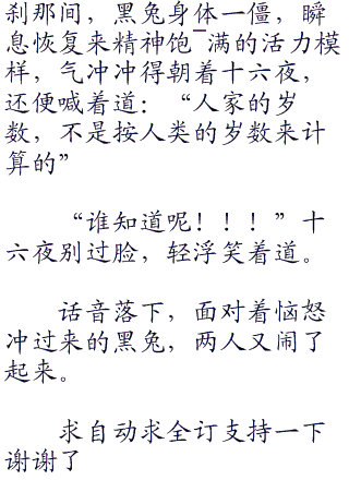 “喂!管我什么事?还有,这姿势要亲上咯”十六夜满不在乎地态度,轻浮地笑着,像是给某只兔子做出提醒着道。