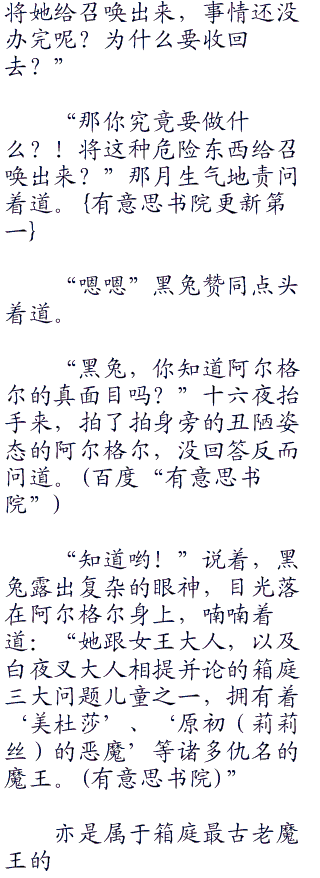 “十六夜,为什么将阿尔格尔召唤出来?”黑兔疑惑地问道。