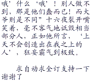 “我没打算给你条件,至于足不足那是你的事!而我”十六夜双手一摊,无奈的表情瞬间转为阴险得笑容,道:“直接将军!!!要是跟黑兔进行恩赐赛,这赢得未免太过于简单了吧?”