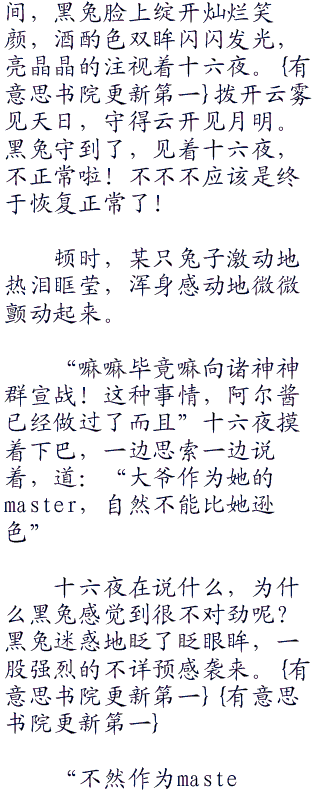 “宣战?!”阿尔格尔下意识向着黑兔望去,随即露出一副瞧不起地傲慢态度,十分不客气地说道:“区区一只兔子,还真够胆啊!是在找死吗?”