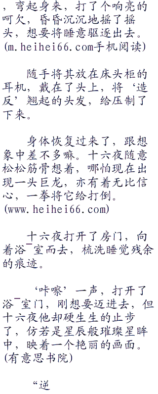 “随便你,我去睡了!”随口扔下一句,十六夜转身打开之前居住过的房间的门,回房补觉去。