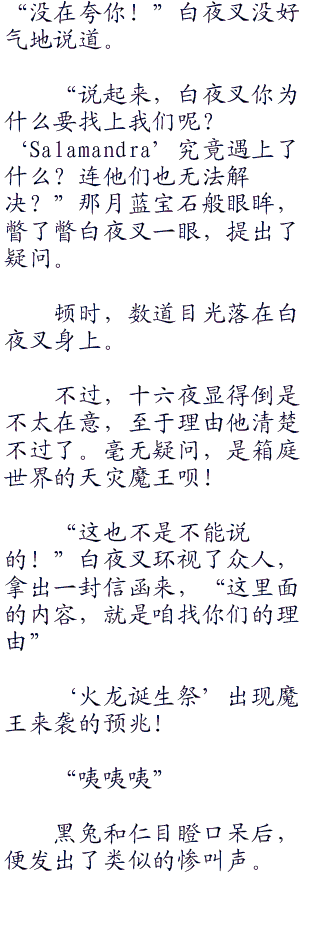 不然,白夜叉也不必要邀请十六夜他们过来。