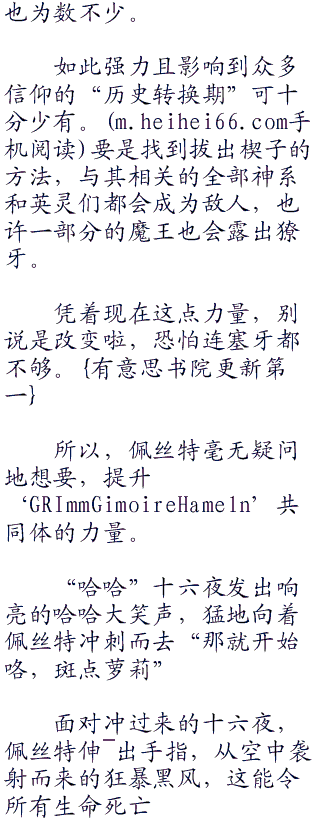 “你说什么?!”佩丝特收敛回笑容,皱着眉头瞪着十六夜,猩红的瞳眸中排斥着杀意。这人类小子还没见识到她的力量吗?居然还敢调侃她!