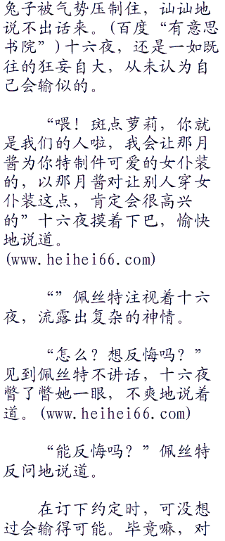 “哼!”闻言,还没等十六夜回答,佩丝特冷哼一声,将头扭过一旁,连看都不看十六夜一眼,却一副认命的表情。