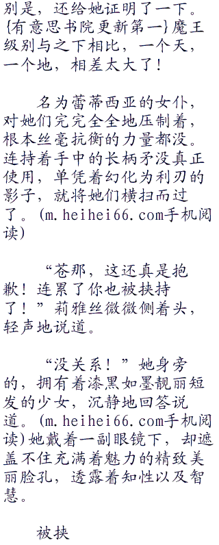 “那真的只是女仆吗?”莉雅丝下意识地向蕾蒂西亚望去,只见正一副淡然的表情,娴熟地侍~奉着ster左右。不是女仆,那是什么?