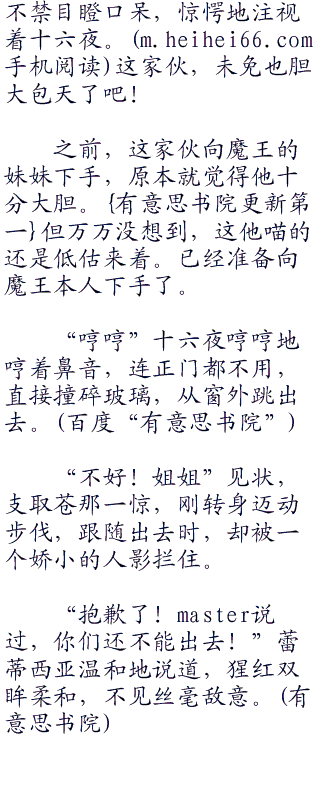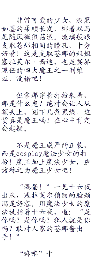 “ster,我来”蕾蒂西亚赶紧拿出手巾,帮了十六夜擦起来。