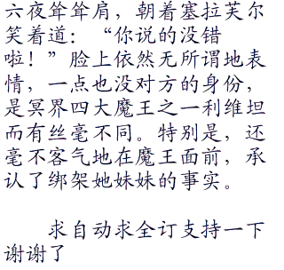 这片地域,当属于她姐姐塞拉芙尔·西迪,也是就魔王利维坦的领地。没想到,这么快就收到风声赶来了。