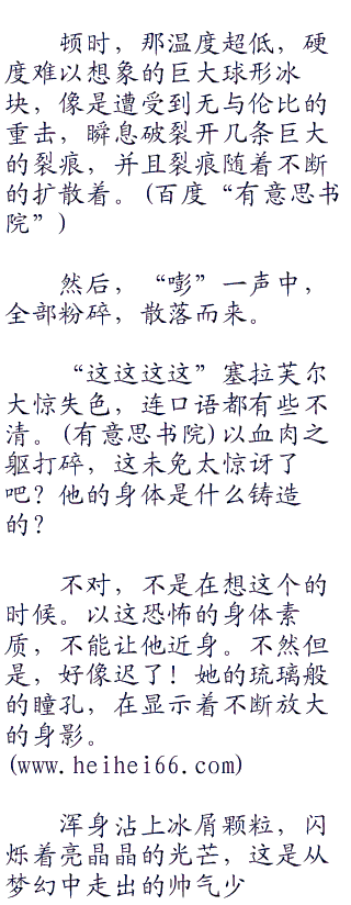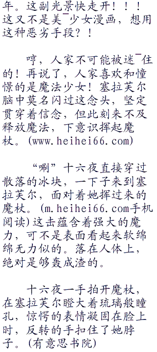 塞拉芙尔见十六夜打碎魔法阵,俏丽地脸孔一僵,琉璃般美丽的瞳孔闪过一丝震惊。但她并不停止下来,意识控制着冰棱锥,在十六夜通过地路途上,进行阻拦与截杀。