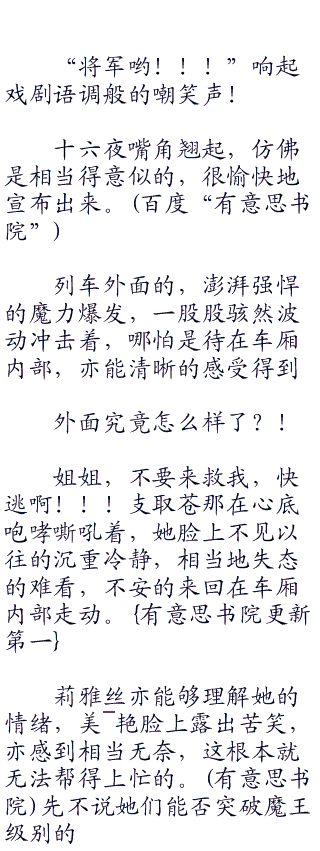 “哈哈哈”沿途中,十六夜哈哈大笑着,脸上丝毫不见有疲惫之色,悠然像是在玩游戏似的,嘴中还说着道:“喂!继续!继续!还有要加大难度,这太简单了,可提不起真正的兴致哟”