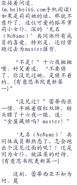 “呼呼能得到您的褒奖,是我的光荣,ster!”蕾蒂西亚展开出平常难得一见的笑脸。