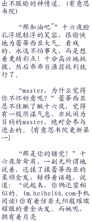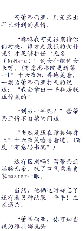 “ster,你认为我会输掉吗?”蕾蒂西亚不服气。