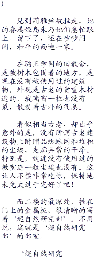 “”莉雅丝苦笑一下,解释着道:“这倒不是骗人!‘能够实现你的愿望!’对象并非是你!应该说,对象不是特殊异能士,而普通的人类!