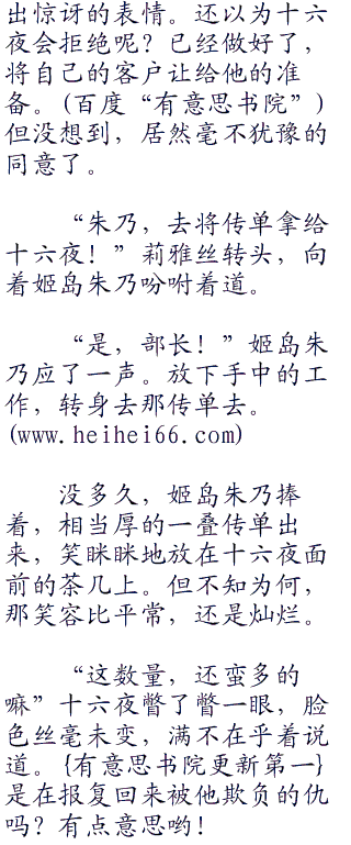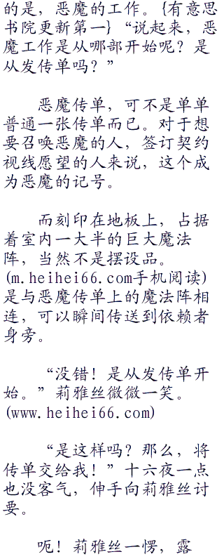 “这还真简单明了啊!”莉雅丝点头。这家伙,是对恶魔的工作产生了兴趣而已。