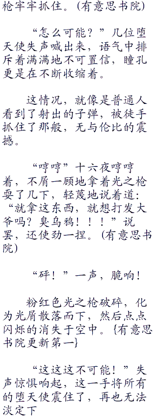 那粉红色光之枪没有如同诸位堕天使预料般,将看不起得人类贯穿掉,而是在还有着不小的距离时,停止了下来,不得前进半分。