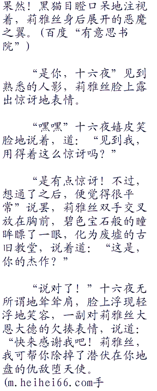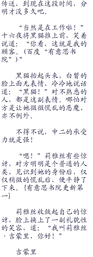 “不过嘛”语气一转,十六夜摸着下巴,微微眯着璀璨星眸,瞅了瞅黑猫一眼,这般停顿了想,并没接着说下去。