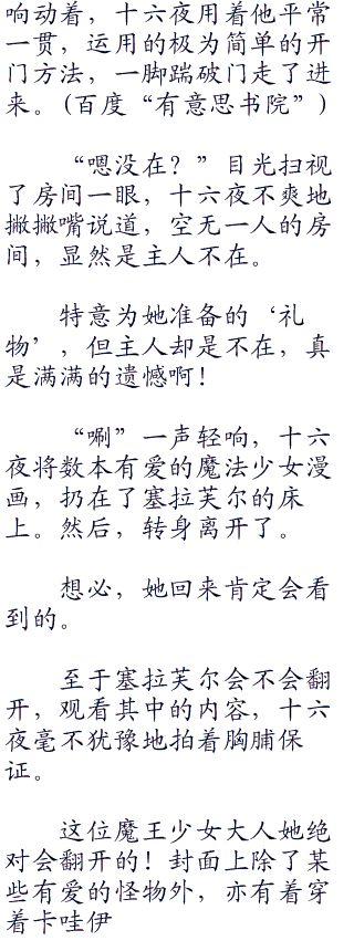 “什么hentai啊?!”十六夜撇撇嘴,微微眯着璀璨星眸,眼眸扫过塔城小猫手上的书本,还似笑非笑地瞅了塔城小猫一眼,用着教育的口气,说着道:“那是你自己脑中思想复杂,要用欣赏的眼神去看啊~!猫耳娘本子,很有趣的哟”