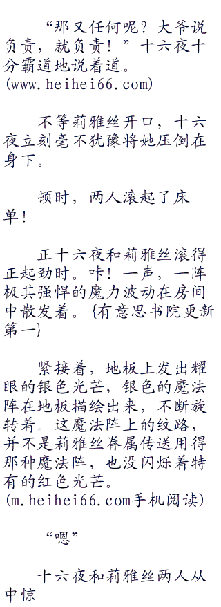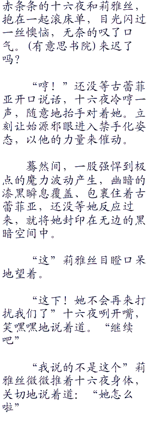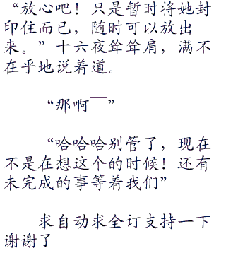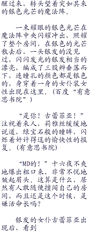 而在熟睡地十六夜,则被惊醒过来。昏昏沉沉地睁开朦胧的睡眼,以极度不高兴的眼神望过去,嘴中跟着说道:“喂!是哪位在学大爷开门的方式啊?还有,三更半夜的打扰我,是不是在欠揍呢?”