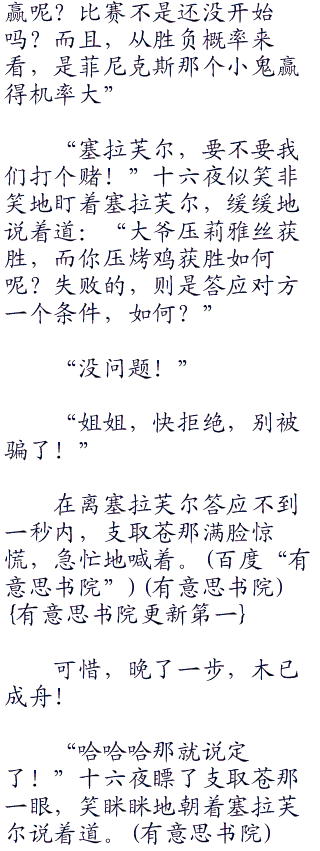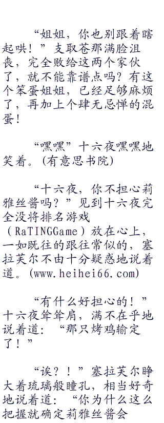 莉雅丝这么自信的表情,令古蕾菲亚微微一愣,莉雅丝的信心未免也太过于充足了吧!明明双方对比,无论是作战经验,还是论人数战斗力来看,貌似瑞赛尔那方更有利吧!