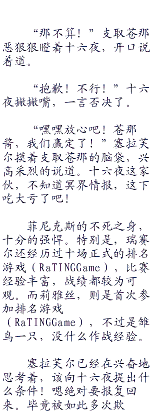 不精彩,是不会放过你哟!十六夜恶劣地笑着。