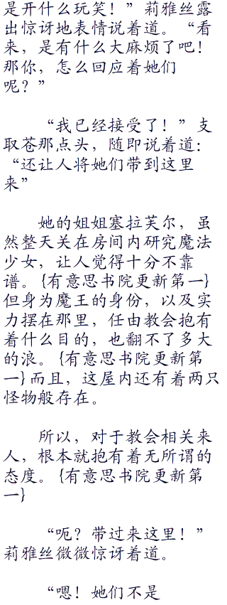 这不过是随便的应付,根本就没听进去嘛!蕾蒂西亚微微苦笑着。ster还真是一如既往的我行我素啊!