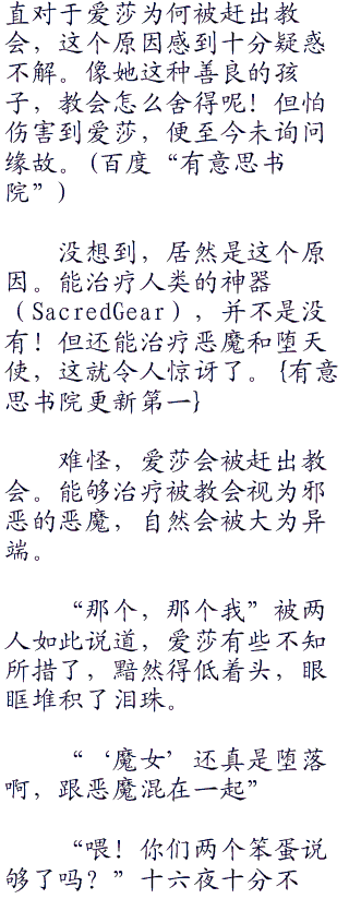 “我我,我来为你们治疗”爱莎能耐不住,结结巴巴地说着道。
