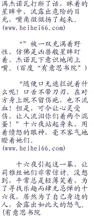 “哼哼”十六夜哼哼着,脸上排斥着满满不高兴的色彩,眯着璀璨星眸,随意地在杰诺瓦和紫藤伊莉娜两人身上来回扫动着,裂开嘴露齿,不怀好意地说着道:“两只笨蛋又在胡乱说了吗?看来,之前接受得惩罚不够”