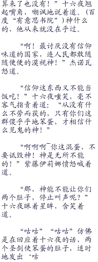 “喂!你太肤浅了吧,莉雅丝!”十六夜不满地说着,以不高兴的眼神看着莉雅丝,道:“你以为大爷借给他的力量,连区区一只臭乌鸦都收拾不了吗?切!不过是在那场战争活下来的乌鸦,有什么值得炫耀吗?要是当时大爷在场,将神和元祖魔王统统收拾个遍”讲到最后,露出遗憾的表情。