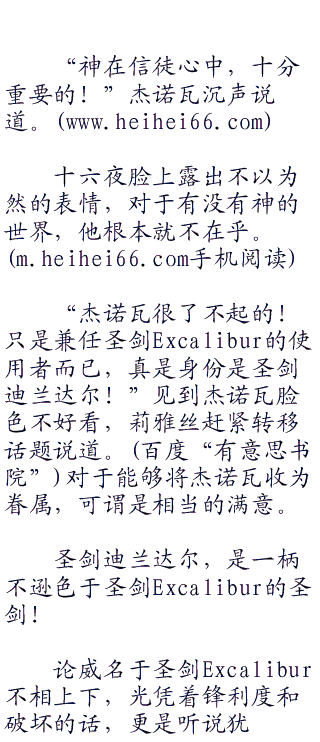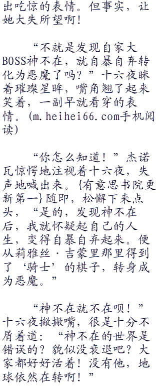 “当然在啦,别随便把我消失掉!我会在,一直都在!”杰诺瓦呼了口气,愤然地说道:“莫非,你不想知道我为什么会在吗?”