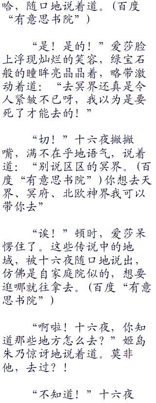 “冥界啊!地狱我以前就相当有兴趣了!但是为了去更好的天国,我一直侍奉着主。可是如今变成了恶魔,那就不能去天界了。踏入受到天罚之人所被送往的地狱,真是讽刺呢!呵呵呵呵”杰诺瓦发出不明地笑声。