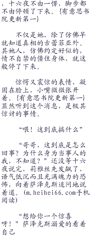 “请随我来!客人们都等久了”突然间,萨泽克斯柔和的笑着,边转身边说着道,还领着诸位带头先走。