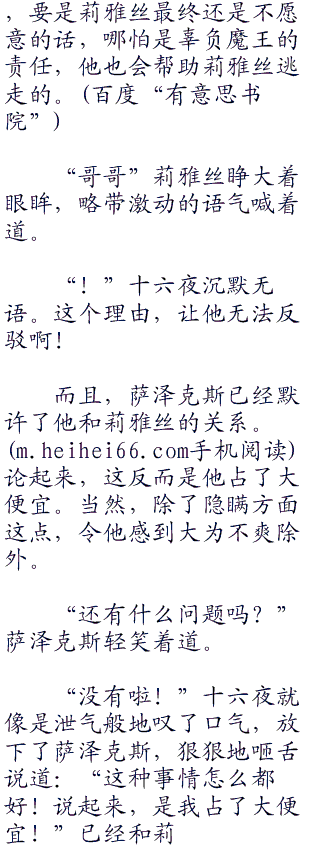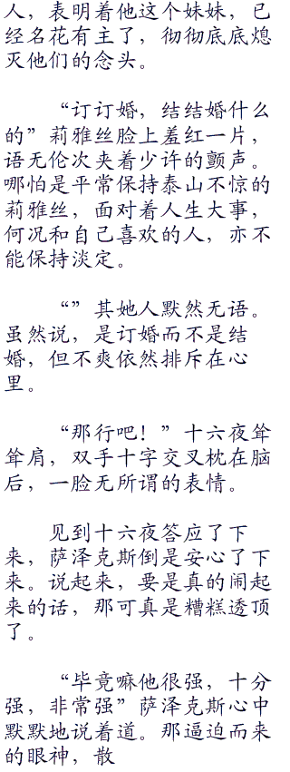 “这怎么是算计你呢?”萨泽克斯脸色不变,依然是柔和的笑容,仿佛是十六夜失礼的行为,没丝毫受到影响似的。“跟我妹妹莉雅丝订婚,是多少人梦寐以求的事。”