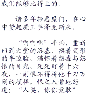 “”洛基气得浑身发颤,在他看来,以他身为神的身份,对于人类讲话,莫过于赐予的最大恩赐,而对方却如此不知好歹。“老不死的,你就是跟这样群人混在一起吗?”