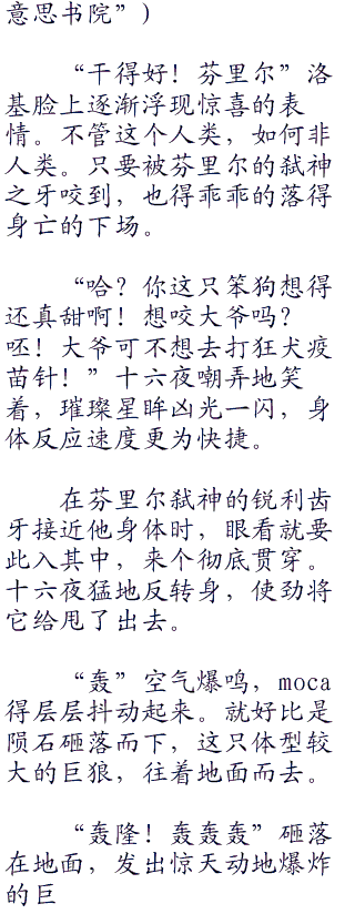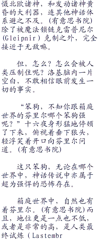 芬里尔愤怒地咆哮起来,回神奋力地挣扎开来。虽然说无法真正的伤害得了它,但亦砸得它生痛的。