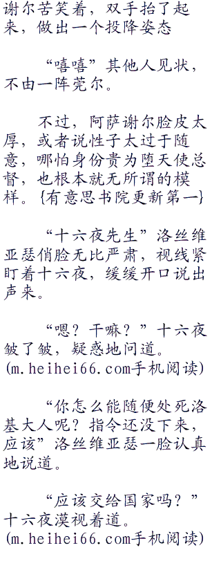 “哈哈”闻言,阿萨谢尔放声哈哈大笑,说道:“那我还