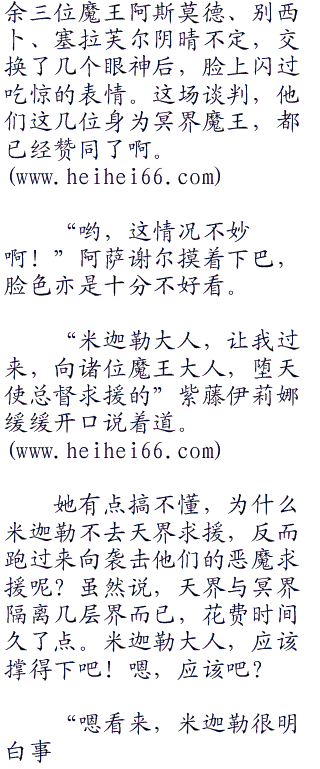 . ”搞错什么了吧?!米迦勒没亲自过来,就派怎么一只小天使,该不会是瞧不起我们恶魔啊?”