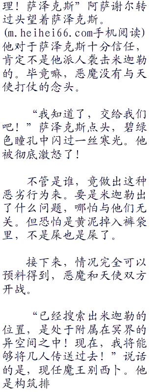 “”萨泽克斯和阿萨谢尔对视一眼,两人满脸十分严肃,目光流露出严峻,觉得好像发生某只出乎意料的事情了。而且,还是向着不好的方面。