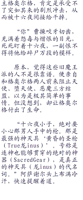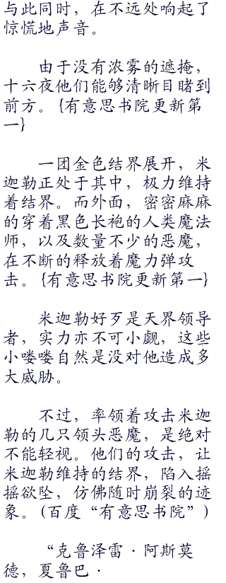 想必,米迦勒就是被绝雾(DinsionLost)拉入这个异空间的。而且,难怪以魔王别西卜魔王级别中超越者的实力,只能够将三个人送入此地。
