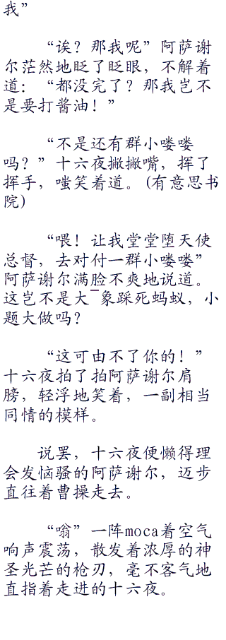“萨泽克斯,你这可恨的虚伪存在,居然想和恶魔的死敌天使、堕天使和谈?”克鲁泽雷·阿斯莫德伸手指着萨泽克斯,气愤地指责起来。